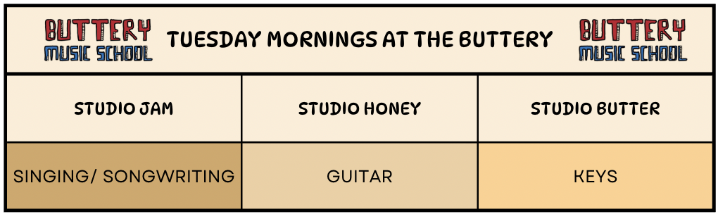 The band program - once you’ve reached a certain ability, you have the chance to join a Buttery band, where you meet weekly with your band mates and mentor to learn covers, jam, write originals, play gigs and record.